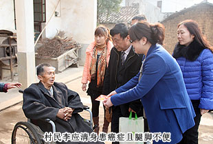 接著,慰問組又來到身患肺癌的李應(yīng)清家,因身患肺癌且腿腳不靈便,他的妻子多年前離家出走,兒子尚在讀書,目前唯有年逾八十的老母親照顧全家。其家庭困難可想而知!李應(yīng)清再三致謝,家中80歲母親更握著綠之韻集團(tuán)董事常務(wù)副總裁勞嘉的手動(dòng)容的說:“好人?。∧銈兌际呛萌?!”
