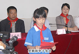 初夏的雨水,濕潤了洞陽大地;真情的幫扶,溫暖了困難學(xué)生的心窩。儀式上,首先由工業(yè)園實(shí)驗(yàn)小學(xué)學(xué)生代表為各位代表和愛心人士佩戴紅領(lǐng)巾。鮮艷的紅領(lǐng)巾,是孩子們心目中最為珍貴和圣潔的禮物,凝聚著孩子們濃濃的感激之情和感恩之心。隨后,工業(yè)園實(shí)驗(yàn)小學(xué)羅校長致歡迎辭,他對各位領(lǐng)導(dǎo)、嘉賓的到來表示歡迎,對各位代表和愛心人士的慷慨解囊和無私援助表示衷心的感謝。